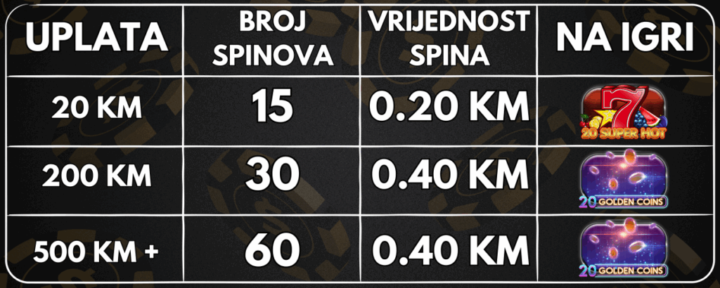 Ukoliko danas provrtiš uplaćeni depozit na slot igrama , sutra te očekuje jutarnje iznenađenje, i to po sljedećoj tabeli: