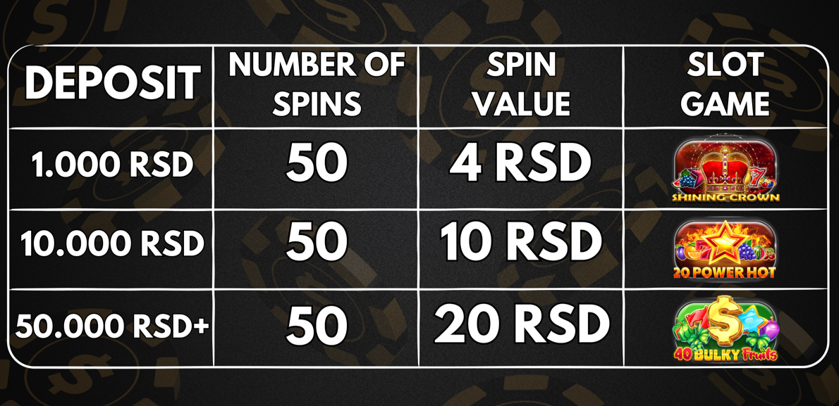 If you spin your deposited amount today, a morning surprise awaits you tomorrow, according to the following table: